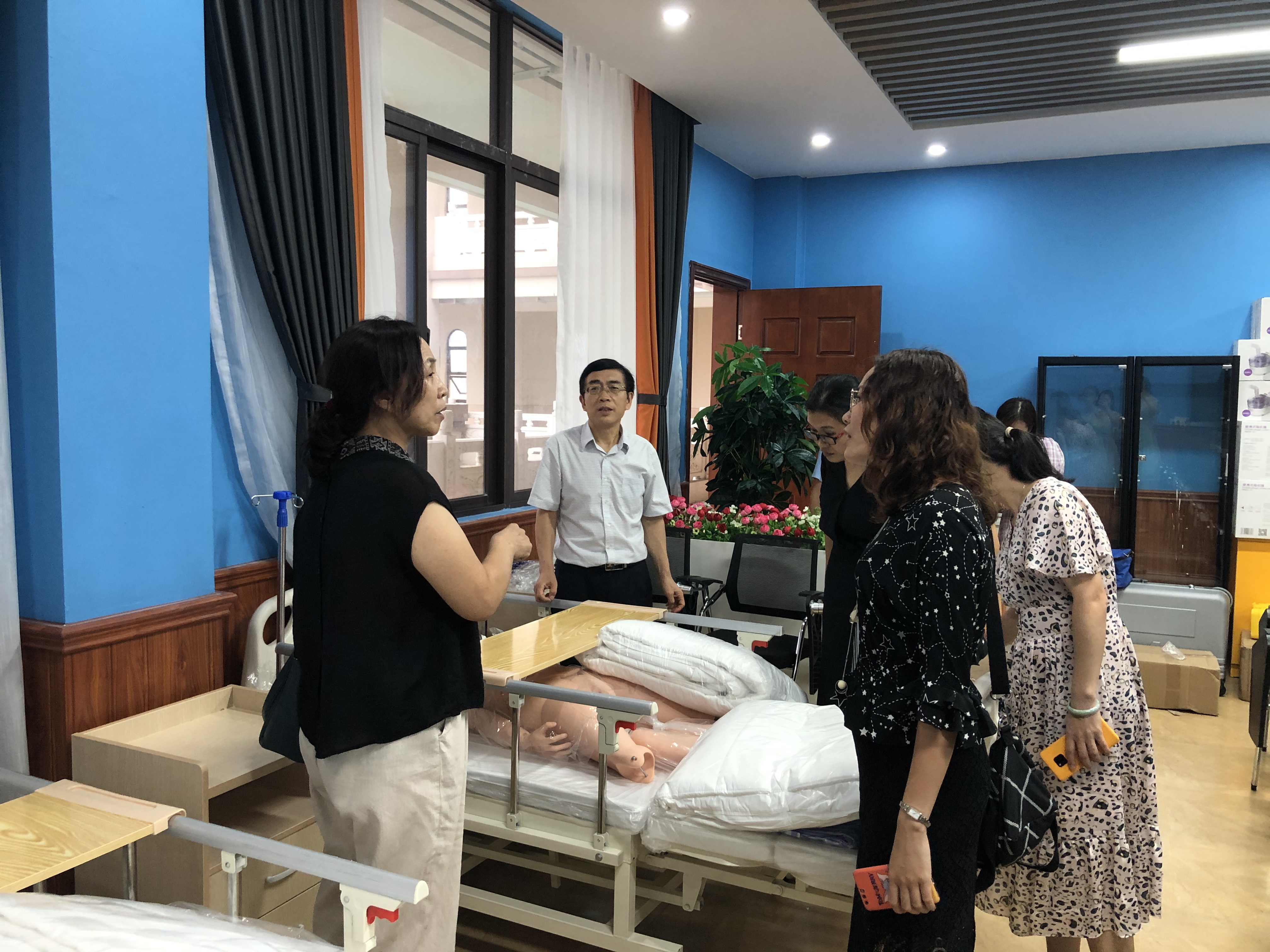 会后,原院长和王书记组织大家参观了3044永利新建的家政和健康专业的实训室,教师们对实训室的硬软件设备感到满意,对接下来要开展的实训项目充满了期待。